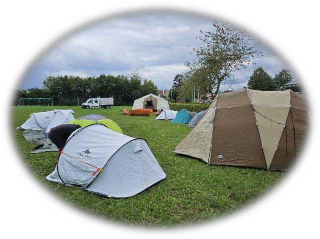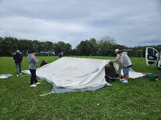Begonnen hat die Projektwoche mit dem Aufbau des Lagers. Dazu mussten alle Teilnehmerinnen das große Gemeinschaftszelt ohne Anleitung aufstellen. Durch die unterschiedlichen Zeltstangen, die Größe des Zeltes und dem Gewicht der Plane war hier gute Koordination und Zusammenarbeit gefragt. Nach einer kurzen Reflexion stellten wir den Rest des Camps auf.