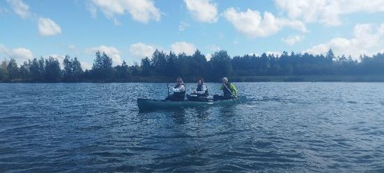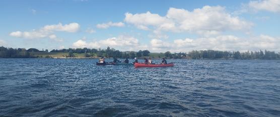Am dritten Tag stand Kanufahren auf dem Programm. Nach einem WarmUp musste jedoch zuerst der Weg zum See mit dem Fahrrad gemeistert werden. Dazu gehörte auch, einen Weg zu wählen, der ggf. mit einer Kindergruppe gefahrlos genutzt werden könnte. Am See angekommen, standen neben dem Erlernen verschiedenen Paddelschlägen und Fahrtechniken auch Spiele am und auf dem Wasser an. In der abendlichen Reflexion stellte sich hier das Spiel „DeadFischPolo“, als besonders Highlight heraus.